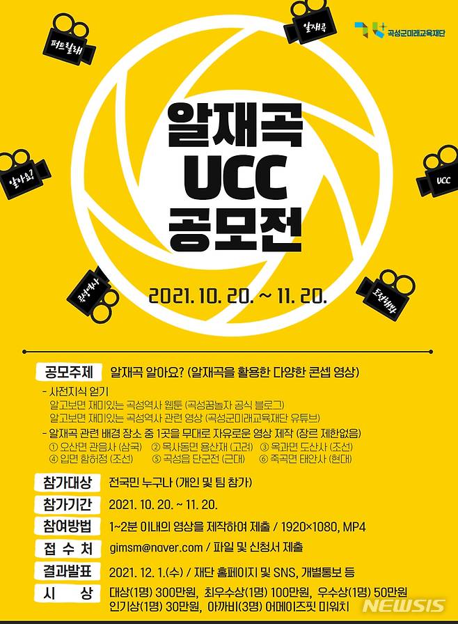 곡성군미래교육재단은 다음달 20일까지 '알재곡 UCC 공모전'을 개최한다.