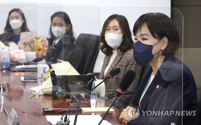 (서울=연합뉴스) 전현희 국민권익위원장이 21일 서울 종로구 정부합동민원센터에서 열린 '사회적 약자 민원해결 유공자 시상 및 간담회'에 참석해 인사말을 하고 있다. 2021.10.21