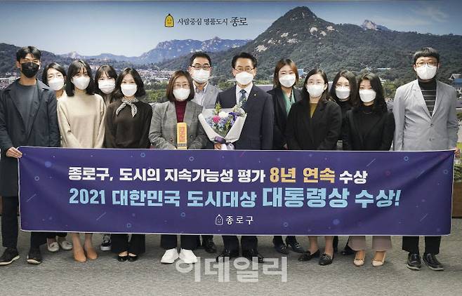 [이데일리 김태형 기자] 종로구(구청장 김영종)는 국토교통부가 주최한 '2021 대한민국 도시대상'에서 대도시 부문 종합평가 1위를 달성하며 ‘대통령상’ 수상해 전국 지자체 중 유일하게 8년 연속 도시대상을 수상했다.