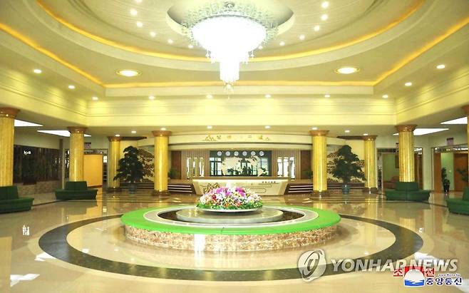 (평양 조선중앙통신=연합뉴스) 북한 황해북도 정방산 기슭에 3개 호동과 운동실, 수영장 등을 갖춘 정방산호텔이 지난 20일 준공됐다고 조선중앙통신이 21일 보도했다. 2021.10.21