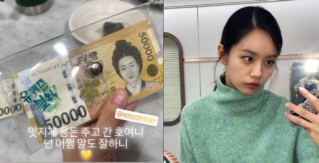 "멋지게 용돈 주고 간 호여니" 정호연, 혜리에게 돈 다발을..'의외의 친분'[★SNS]