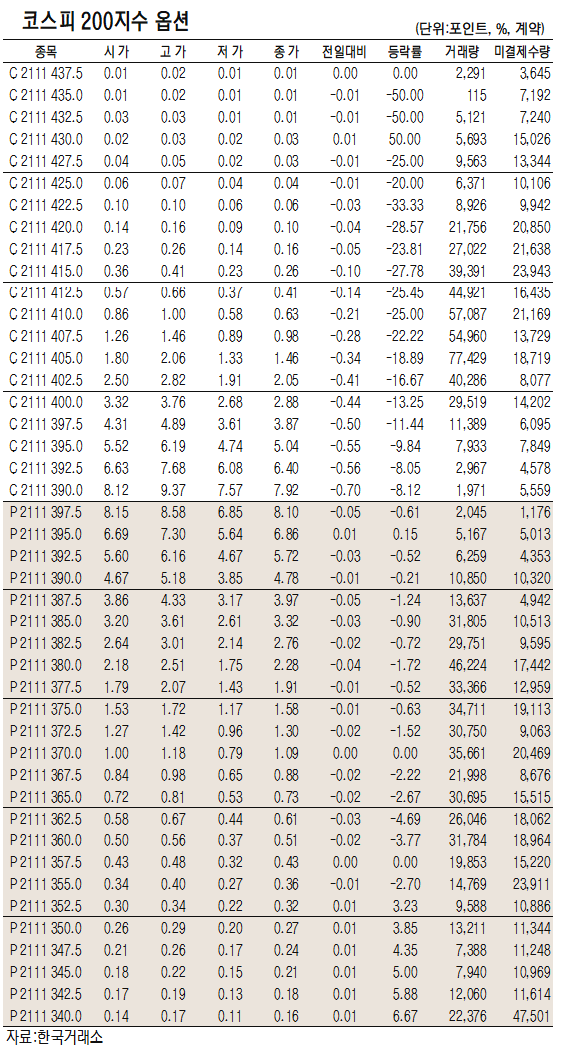 [표]코스피200지수 옵션 시세(10월 21일)