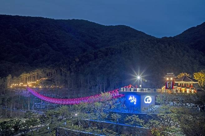 [산청=쿠키뉴스] 강연만 기자 = 깊어가는 가을, 산청군 동의보감촌을 상징하는 새로운 랜드마크 무릉교가 야간조명을 밝혔다.