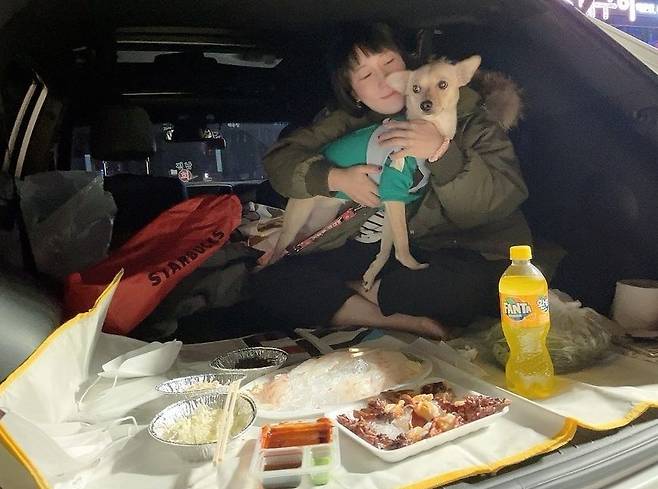 공개된 사진 속 김영희는 밤바다를 바라보며 차박 캠핑을 즐기고 있는 모습이다. 남편, 반려견과 함께 먹방을 펼치며 여유를 만끽하는 김영희의 근황이 눈길을 끈다.