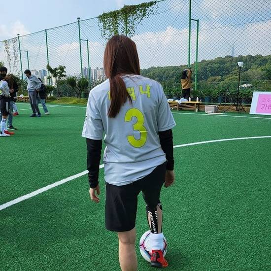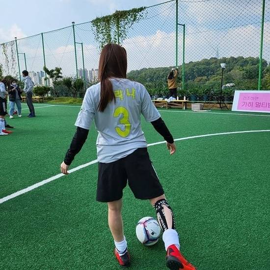 공개된 사진 속 채리나는 SBS '골 때리는 그녀들' 유니폼을 입고 축구 연습을 하는 모습이다.