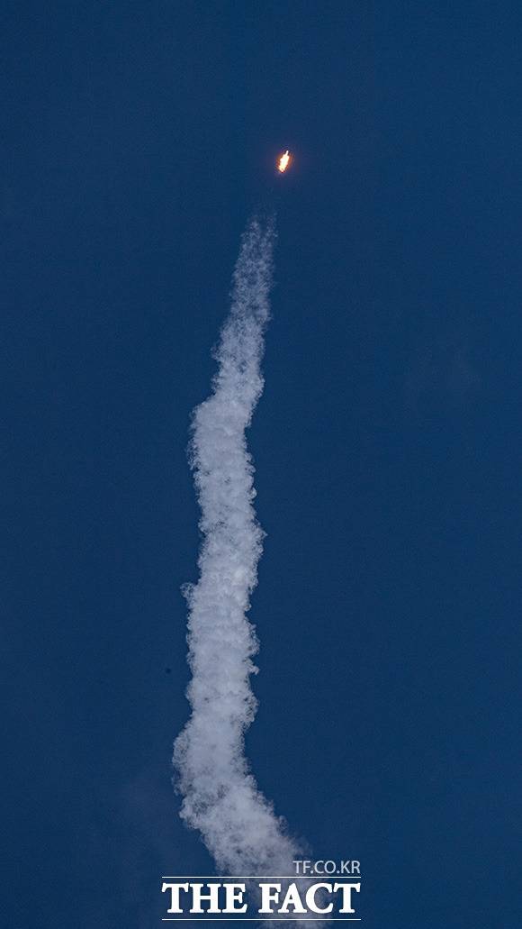 [더팩트ㅣ사진공동취재단] 한국형 발사체 누리호(KSLV-ll)가 21일 오후 전남 고흥군 나로우주센터 제2발사대에서 화염을 내뿜으며 힘차게 날아오르고 있다.