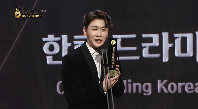 이어 “더불어 항상 옆에서 많은 응원 주시는 팬 분들과 가족에게 영광을 돌리겠다. 계속 좋은 에너지, 좋은 음악 전해드리는 가수로 잘 걸어가겠다. 초대해주셔서 감사하다”고 덧붙였다. (사진=서울드라마어워즈 2021)
