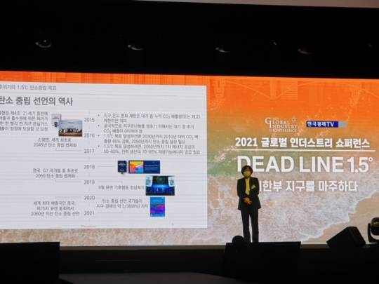 '데드라인(Deadline) 1.5 : 시한부 지구를 마주하다'라는 주제로, 한국경제TV가 주최한 '2021 글로벌 인더스트리 쇼퍼런스'에서 1세션 연사로 나선 윤순진 대통령 소속 2050 탄소중립위원회 공동위원장은 탄소중립시대 기업의 도전과 과제를 설명하면서 이 같이 밝혔다.