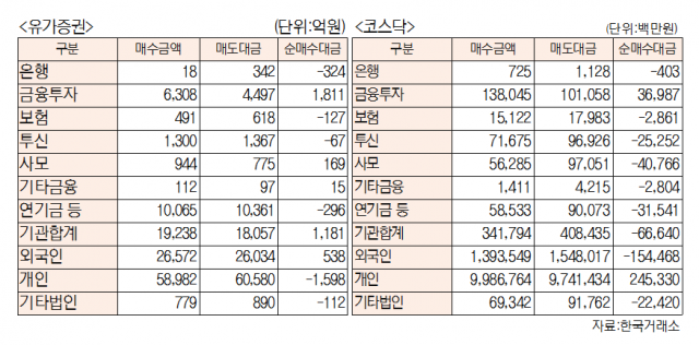 - [표]주간 유가증권·코스닥 투자주체별 매매동향(10월 11일~15일)