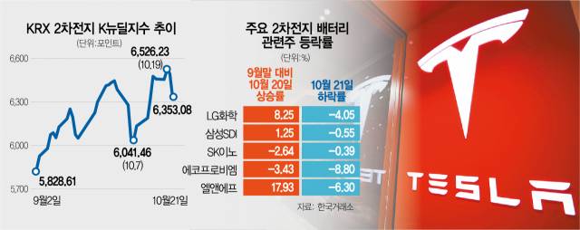 테슬라發 악재에..잘가던 배터리株 '와르르'
