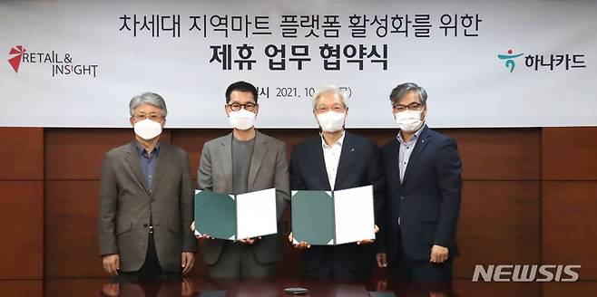 [서울=뉴시스] 신효령 기자 = 하나카드는 식품유통 플랫폼 전문기업 리테일앤인사이트와 차세대 지역마트 플랫폼사업 활성화를 위한 포괄적 업무협약을 체결했다고 21일 밝혔다.