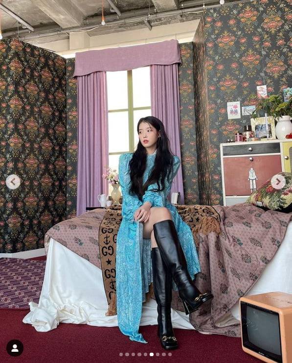 아이유는 21일 자신의 인스타그램에 "하늘색이 잘 받긴 하네~"라는 글과 함께 여러 장의 사진을 게재했다.
