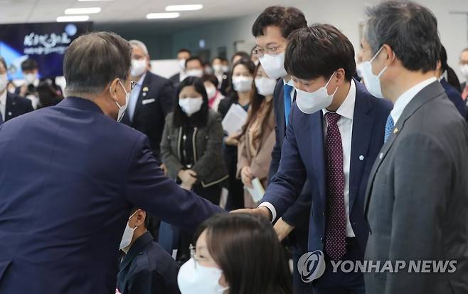 이준석 대표와 인사하는 문재인 대통령
