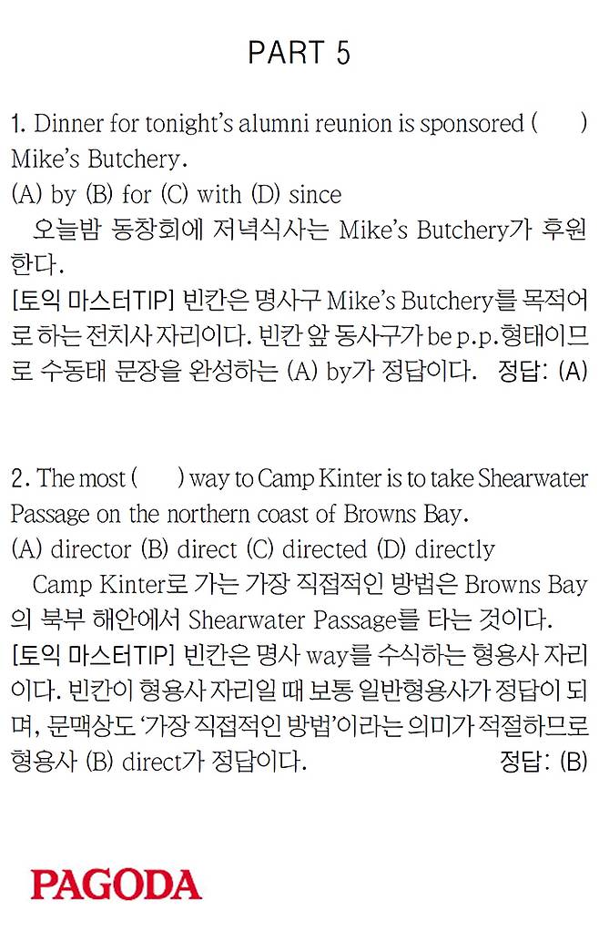 [파고다 강남 스타토익 RC유나신] PART 5