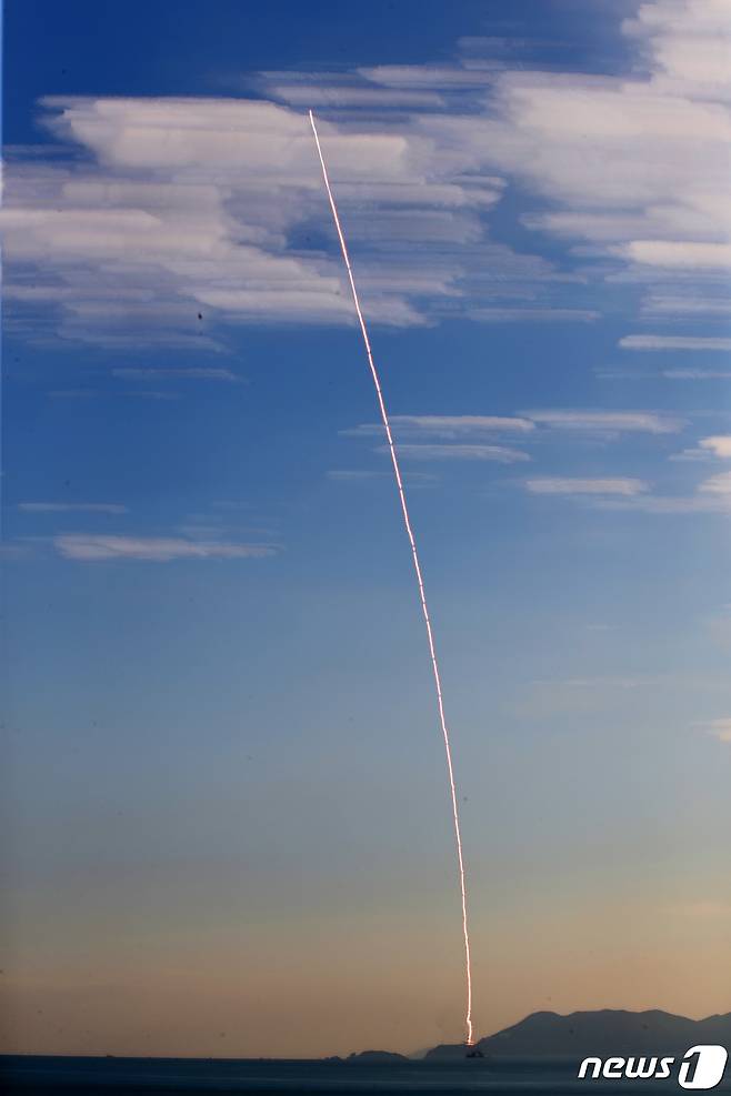 (여수=뉴스1) 조태형 기자 = '한국형 발사체' 누리호가 21일 오후 전남 고흥군 나로우주센터에서 발사되고 있다.