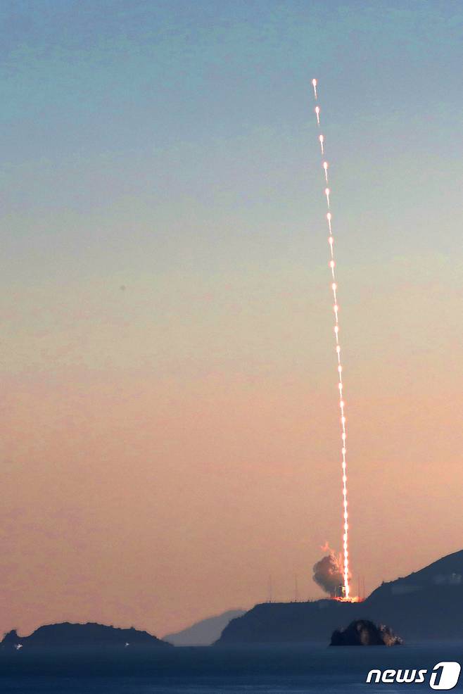 (여수=뉴스1) 조태형 기자 = '한국형 발사체' 누리호가 21일 오후 전남 고흥군 나로우주센터에서 발사되고 있다.