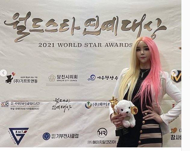 하리수는 21일 자신의 인스타그램에 "월드스타 연예대상 한류부분 특별상 감사합니다. #월드스타연예대상 #특별상 #한류 #하리수 #감사합니다"라는 글과 함께 여러 장의 사진을 게재했다.