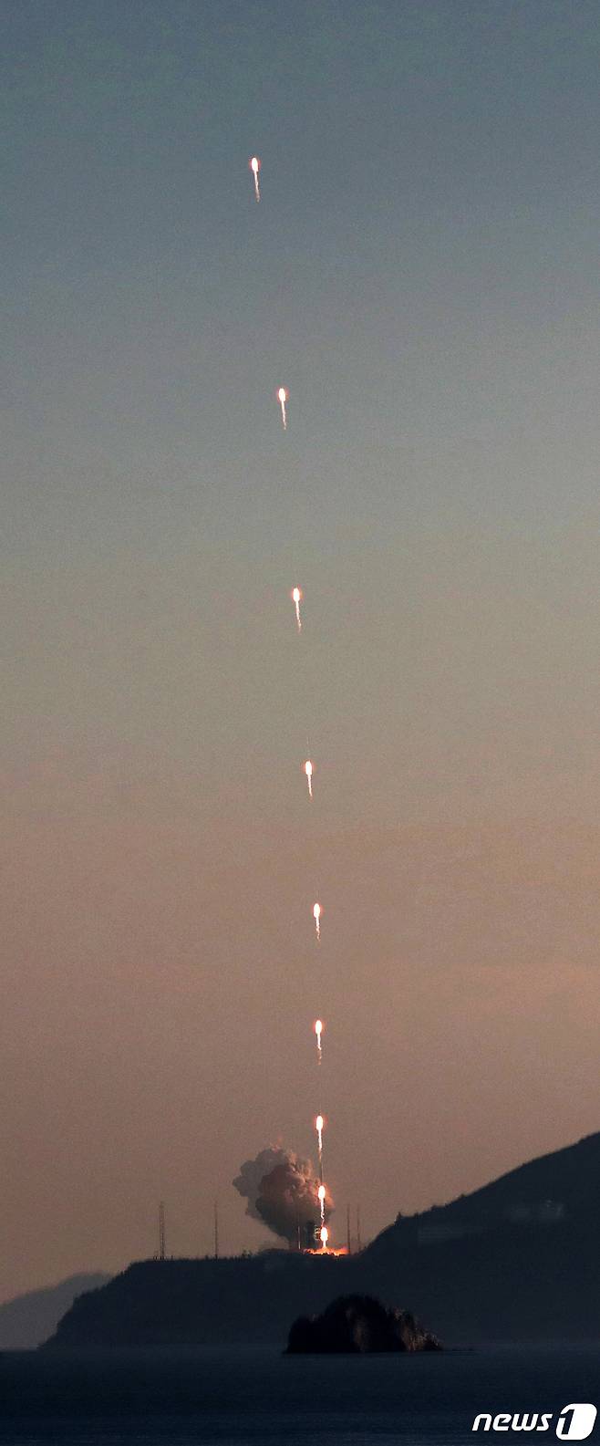 (여수=뉴스1) 조태형 기자 = '한국형 발사체' 누리호가 21일 오후 전남 고흥군 나로우주센터에서 발사되고 있다.