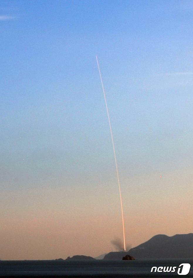 (여수=뉴스1) 조태형 기자 = '한국형 발사체' 누리호가 21일 오후 전남 고흥군 나로우주센터에서 발사되고 있다.