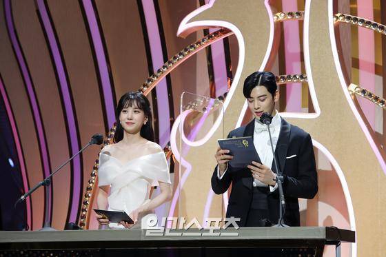 배우 박은빈과 차은우가 21일 오후 서울 마포구 상암동 MBC 공갷홀에서 열린 제16회 서울 드라마어워즈 2021 시상식 사회를 맡았다. 사진=서울드라마어워즈 제공 2021.10.21