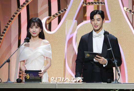 배우 박은빈과 차은우가 21일 오후 서울 마포구 상암동 MBC 공개홀에서 열린 제16회 서울 드라마어워즈 2021 시상식 사회를 맡았다.