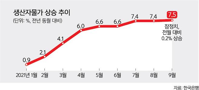 유가가 불지른 생산자물가.. 9월 7.5% 올라 '10년래 최대'