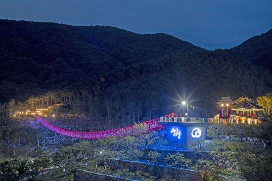 [아시아경제 영남취재본부 최순경 기자] 경남 산청군 동의보감촌을 상징하는 새로운 랜드마크 무릉교가 야간조명을 밝혔다.