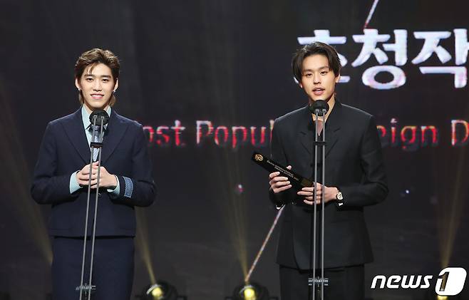 (서울=뉴스1) = 태국 배우 피피(끄릿 암누아이데차콘, Krit Amnuaydechkorn)와 빌킨(푸티퐁 아싸라타나쿨, Putthipong Assaratanakul)이 21일 오후 서울 마포구 상암 MBC 공개홀에서 열린 '서울드라마어워즈 2021'에 참석해 초청작에 선정된 소감을 말하고 있다.