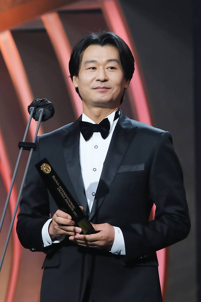 [서울=뉴시스] 박진희 기자 = 배우 박혁권이 21일 서울 마포구 상암 MBC 공개홀에서 '서울드라마어워즈 2021' 시상식에서 남자연기자상을 수상하고 있다. (사진=서울드라마어워즈조직위원회 제공) 2021.10.21. photo@newsis.com *재판매 및 DB 금지