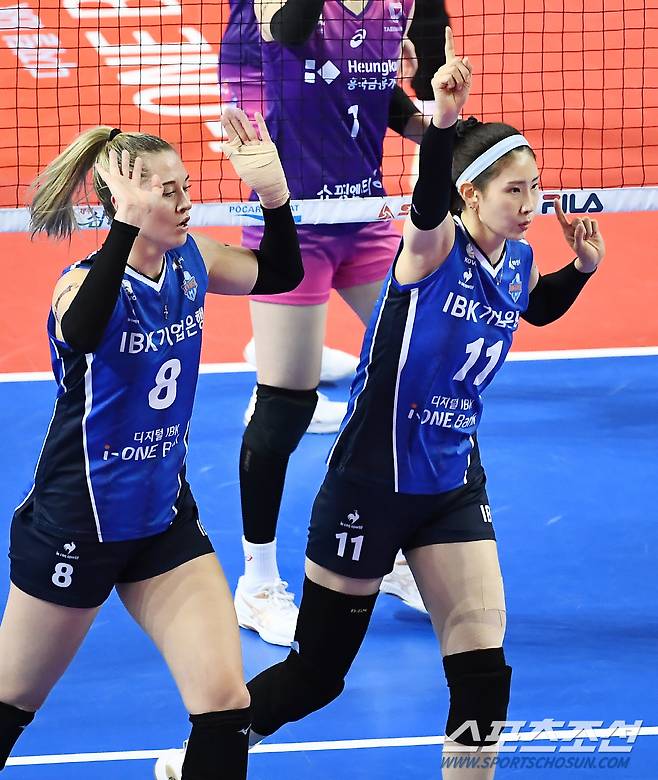 2021-2022 V리그 여자부 IBK기업은행과 흥국생명의 경기가 21일 화성실내체육관에서 열렸다. IBK기업은행 김수지가 득점 후 환호하고 있다. 화성=박재만 기자 pjm@sportschosun.com/2021.10.21/