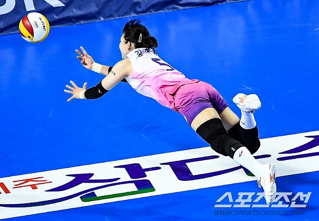 2021-2022 V리그 여자부 IBK기업은행과 흥국생명의 경기가 21일 화성실내체육관에서 열렸다. 흥국생명 김해란이 몸을 날려 디그를 시도하고 있다. 화성=박재만 기자 pjm@sportschosun.com/2021.10.21/