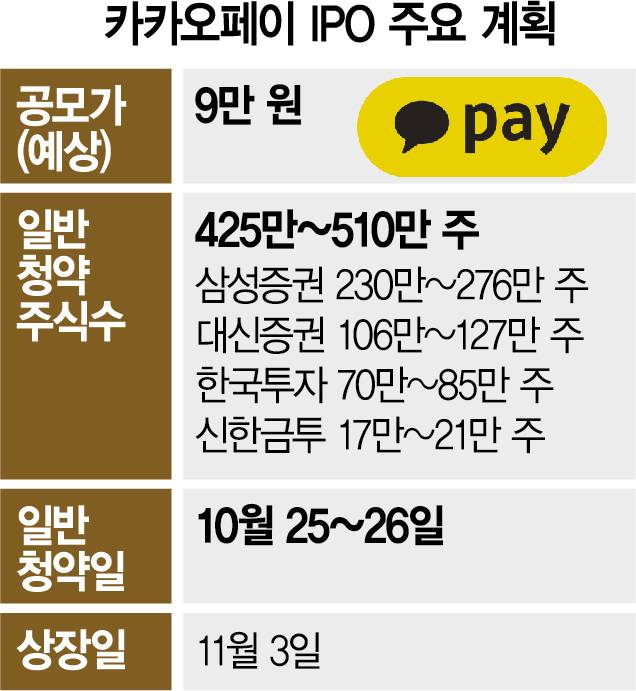 카카오페이는 22일 공모가 9만 원을 최종 확정 공시한 뒤 오는 25~26일 일반 투자자를 대상으로 청약에 나선다.