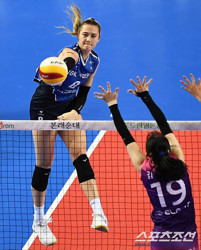 2021-2022 V리그 여자부 IBK기업은행과 흥국생명의 경기가 21일 화성실내체육관에서 열렸다. IBK기업은행 라셈이 블로킹을 피해 공격을 시도하고 있다. 화성=박재만 기자 pjm@sportschosun.com/2021.10.21/