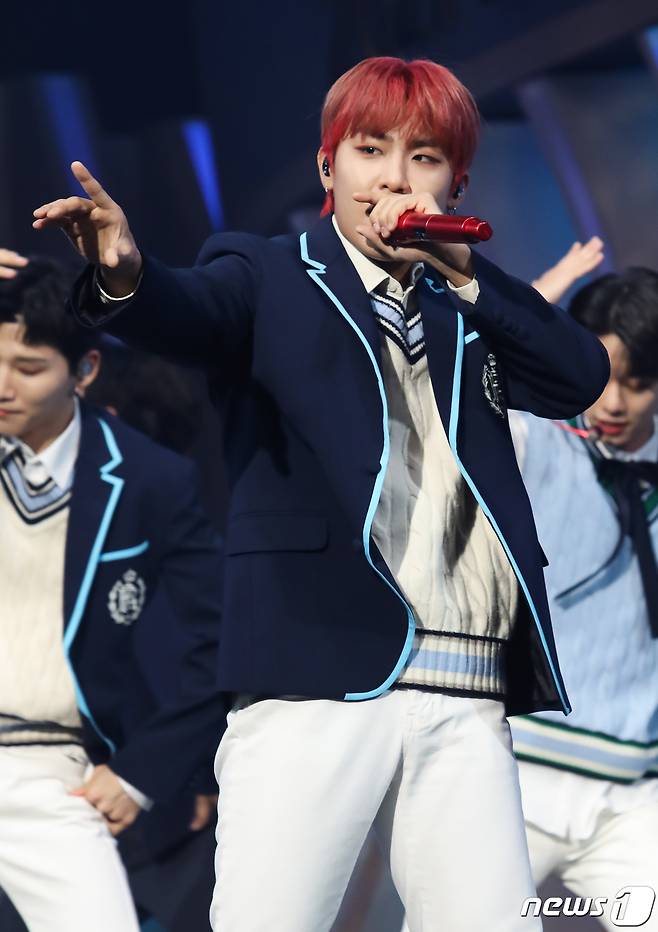 (서울=뉴스1) = 에이비식스 박우진이 21일 오후 서울 마포구 상암 MBC 공개홀에서 열린 '서울드라마어워즈 2021'에 참석해 화려한 공연을 선보이고 있다. (서울드라마어워즈 제공) 2021.10.21/뉴스1
