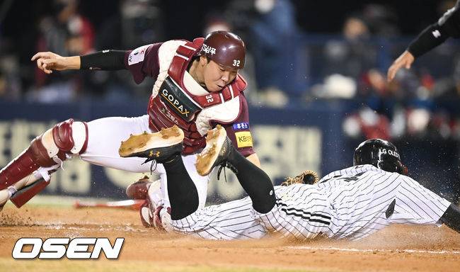 6회말 2사 1,2루 LG 김현수의 1타점 적시타때 1루 주자 서건창이 키움 김재현 포수에게 태그아웃되고 있다. 2021.10.21 / soul1014@osen.co.kr