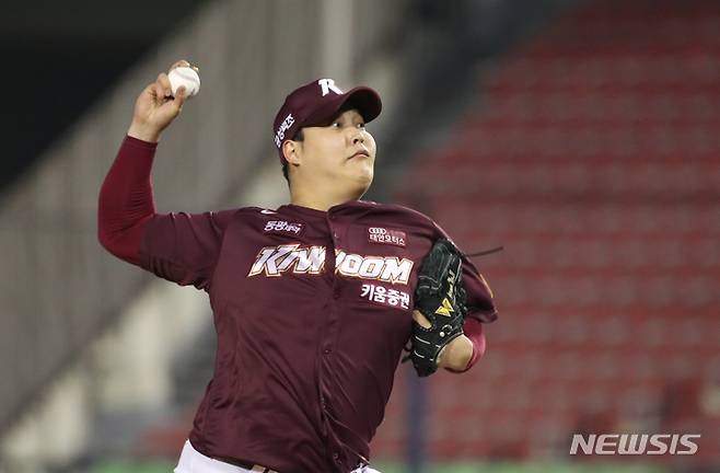 [서울=뉴시스] 고범준 기자 = 21일 오후 서울 송파구 잠실야구장에서 열린 2021 KBO리그 키움 히어로즈와 LG 트윈스 경기, 7회말 키움 조상우가 역투하고 있다. 2021.10.21. bjko@newsis.com