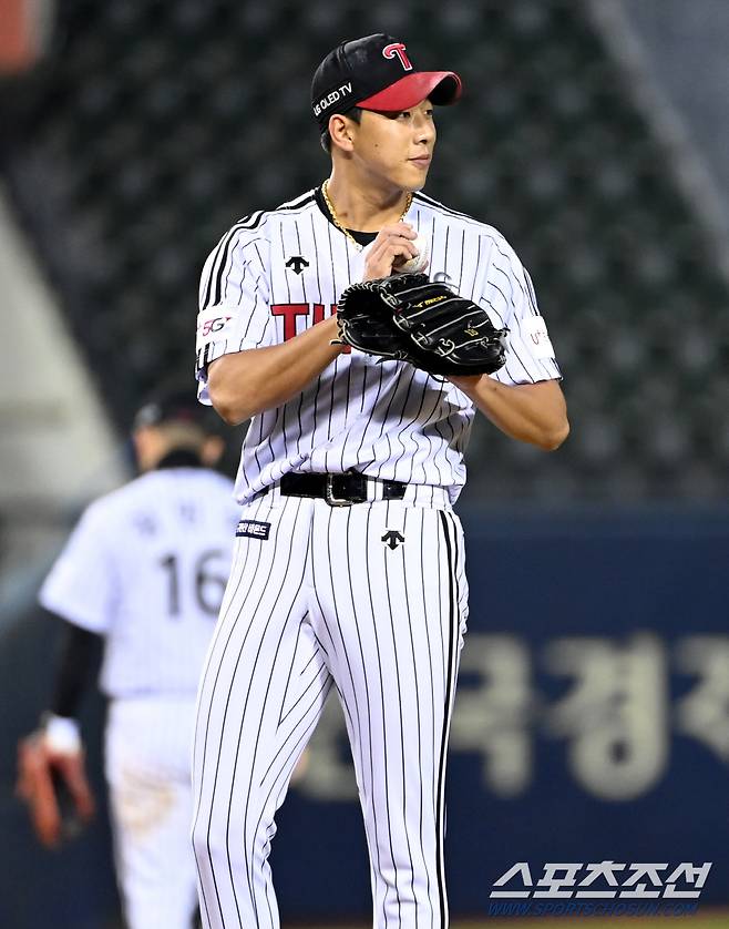 2021 KBO리그 키움 히어로즈와 LG 트윈스의 경기가 21일 잠실야구장에서 열렸다. 8회초 LG 정우영이 키움 크레익의 내야 땅볼때 호수비를 펼친 1루수 이영빈을 향해 박수를 치고 있다. 잠실=허상욱 기자 wook@sportschosun.com/2021.10.21/