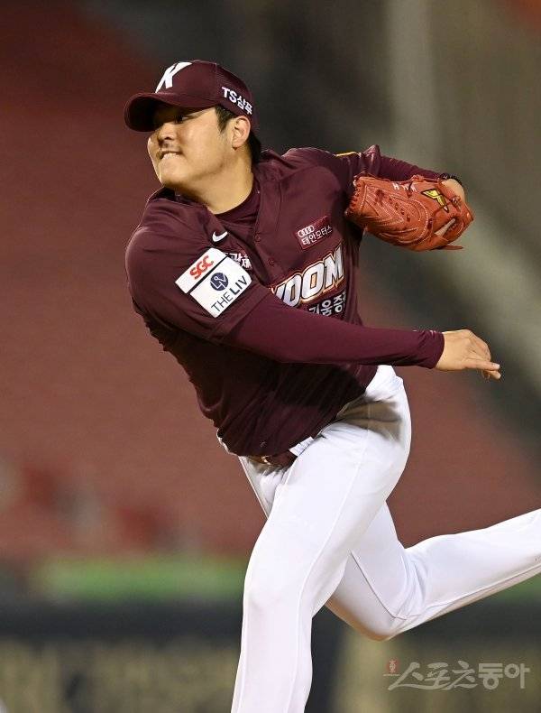 21일 서울 잠실야구장에서 ‘2021 신한은행 SOL KBO리그’ 키움 히어로즈와 LG 트윈스 경기가 열렸다. 6회말 교체 등판한 키움 한현희가 역투하고 있다.
