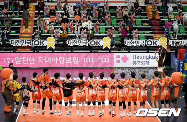 경기 종료 후 OK금융 선수들이 관중을 향해 인사를 하고 있다. 2021.10.21/ ksl0919@osen.co.kr