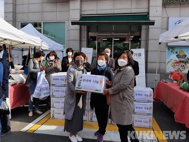 한국여성농업경영인횡성군연합회와 횡성군여성농업인단체협의회는 21일 관내 불우이웃에 4만원 상당의 농산물꾸러미 40박스를 제작해 전달했다고 밝혔다.