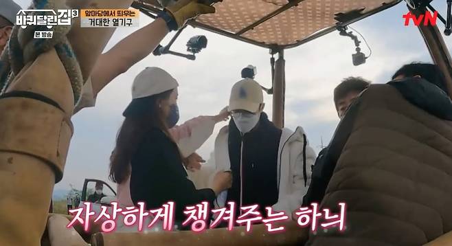 이날 세 남자와 이하늬는 열기구에 탑승해 부여의 하늘을 누볐다. 이 과정에서 이하늬가 다정한 엄마 손길로 공명을 챙겼다면 성동일은 파트너 김희원을 챙기는 모습을 보였다.