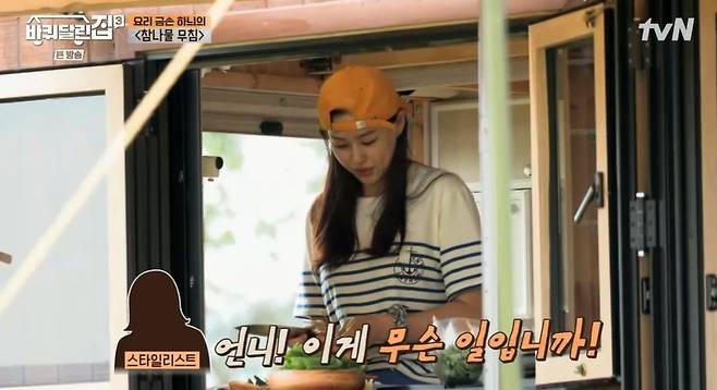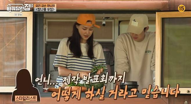 그 시각 이하늬는 참나물 무침 등 곁들임 요리를 준비했다. 이하늬는 또 “서울에 가자마자 의상 피팅을 해야 한다”며 “얼마 전에도 한 소리 들었다. 스타일리스트가 ‘이게 무슨 일인가. 제작발표회까지 어떻게 할 거라고 믿는다’라 하더라. 나 ‘바퀴달린 집’에 나가기 믿지 말라고 했다. 어제도 정신 놓고 먹었다”고 토로, 웃음을 자아냈다.