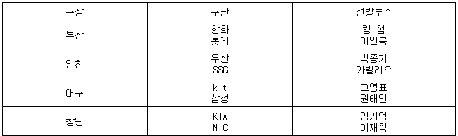 ▲ 22일 선발투수