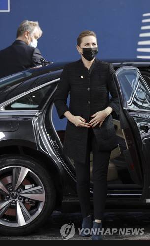 Denmark's Prime Minister Mette Frederiksen arrives for an EU summit at the European Council building in Brussels, Thursday, Oct. 21, 2021. European Union leaders will discuss issues including climate change, the energy crisis, COVID-19 developments and migration. (AP Photo/Olivier Matthys, Pool) POOL PHOTO
