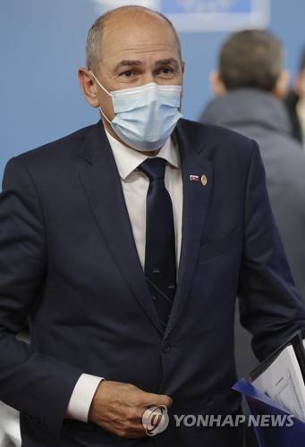 Slovenia's Prime Minister Janez Jansa arrives for an EU summit at the European Council building in Brussels, Thursday, Oct. 21, 2021. European Union leaders will discuss issues including climate change, the energy crisis, COVID-19 developments and migration. (AP Photo/Olivier Matthys, Pool) POOL PHOTO