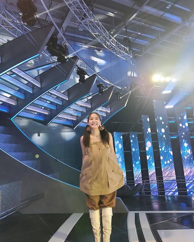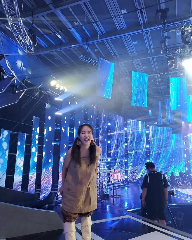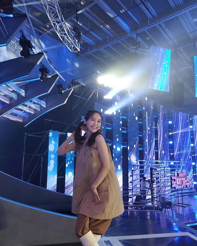 사진 속에는 JTBC '내일은 국민가수' 스튜디오를 배경으로 사진을 촬영 중인 장영란의 모습이 담겨있다.