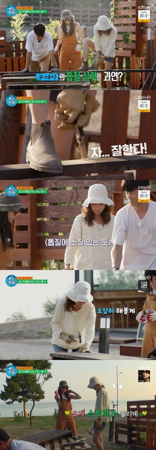 '오늘 무해' 공효진, 테이블 만들며 톱질+망치질 만능 "스트레스 풀려"