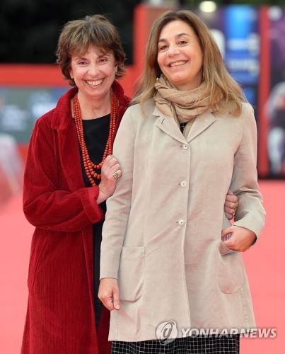 epa09536342 Enrica (L) and Donata Scalfari arrive for the screening of 'Scalfari.A Sentimental Journey' at the 16th annual Rome International Film Festival, in Rome, Italy, 21 October 2021. The Festa Del Cinema Di Roma runs from 14 to 24 October. EPA/ETTORE FERRARI