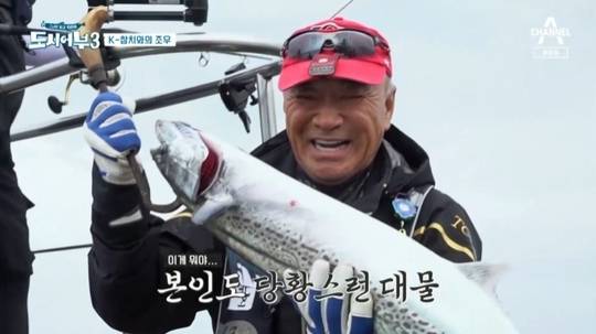 이날 오후 낚시에서 이덕화는 엄청난 괴물 삼치를 낚았다.