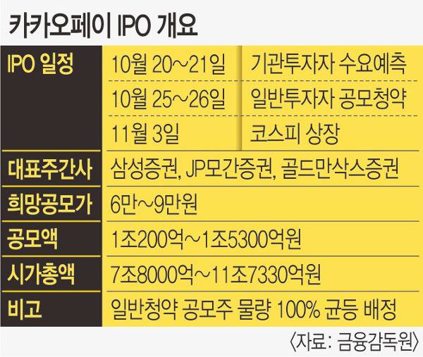 카카오페이는 올해 마지막 IPO(기업공개) '대어'로 공모가 상단 기준 시가총액이 12조원에 달한다.